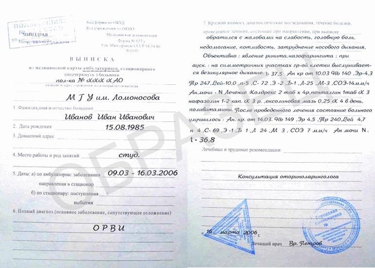 - Наличие печатей, подписей, виз практикующих узких специалистов – вы приобретаете в медцентре официальный бланк.