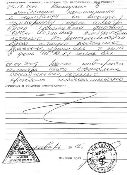 - Амбулаторный – пациент наблюдается в поликлинике, доктор дает рекомендации по лечению, указывается диагноз, результаты анализов и обследований.