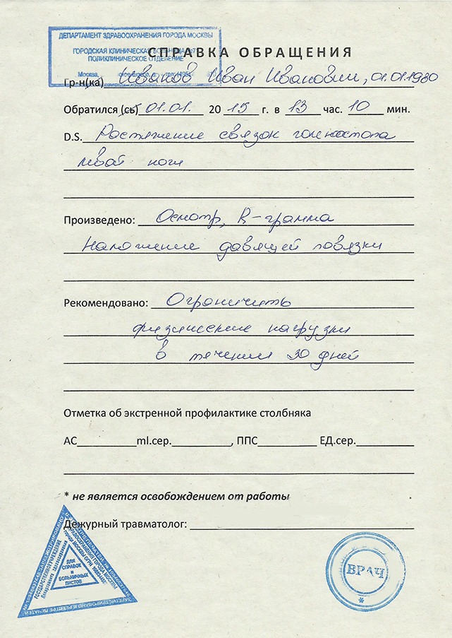 Справка из травмпункта